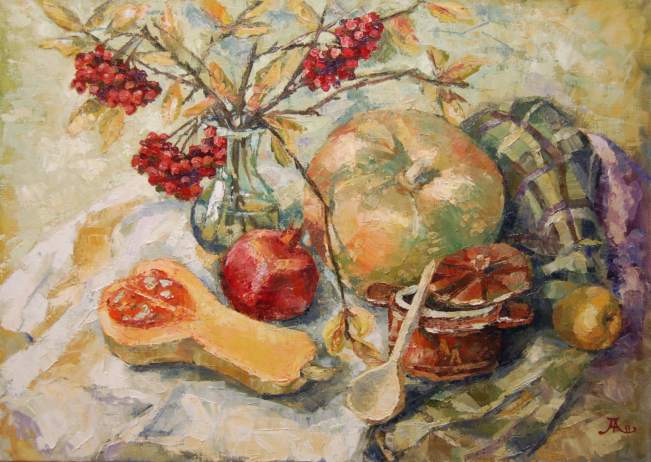 Натюрморт с тыквой и гранатом